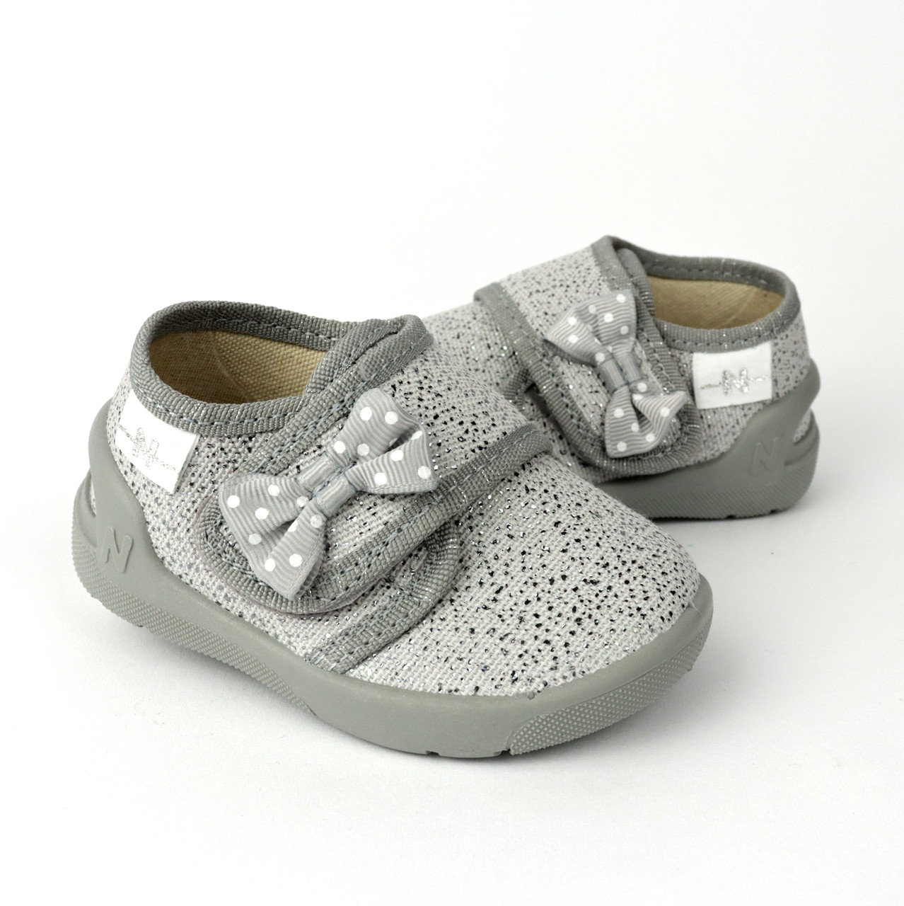 Сірі тапочки для дівчинки поєднують затишок, практичність та милий дизайн. Виготовлені з м’якого дихаючого текстилю, вони забезпечують комфортну посадку та легкість при кожному кроці. Липучка дозволяє швидко та зручно взути тапочки, а бантик додає чарівний акцент.