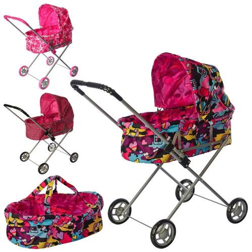Коляска 9308/1002 залізна, кошик, у ляльці, 72-32 см: Коляски, ліжечка для ляльок-іграшки для дівчинки